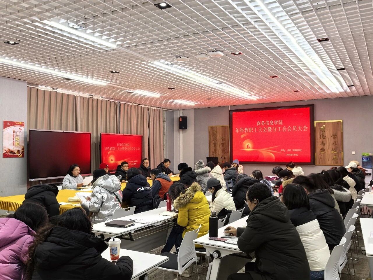 为总结学院年度工作,部署后续重点任务,同时规范分工会组织建设,1月8日,商务信息学院在实验楼105会议室召开教职工大会暨分工会会员大会。会议完成了商务信息学院分工会委员换届选举工作。会议由学院党委副书记徐娇主持,院属全体教职工参会。