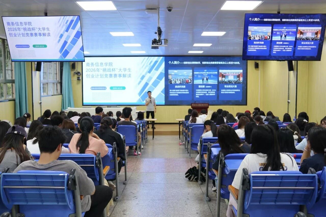 此次讲座为商务信息学院的学子们指明了参赛方向。学院也将持续提供支持,助力学生们在“挑战杯”竞赛中成长为创新型人才。