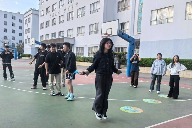 健康跑结束后,跳绳接力赛、跳大绳接力、拔河比赛等趣味活动相继开展,现场氛围迅速升温。跳绳接力中,银绳翻飞、脚步轻盈,选手们展现出敏捷身手与顽强毅力;跳大绳环节,摇绳者稳控节奏,参赛者默契衔接,口号声与绳影交织成动人旋律;拔河比赛将活动推向高潮,队员们紧握长绳、齐心协力,场边呐喊助威声此起彼伏,尽显学子奋勇争先、团结协作的风貌。